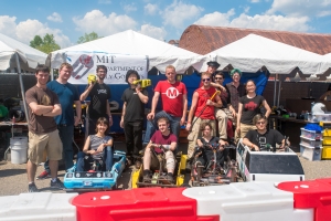 Areas for ImprovementWe do need to upgrade the steering geometry and front wheel hub mechanism, as the left most front tire was grenade-ed in 'infinite mode'. The PWRS group is competitive, quite a bit of running around and hectic repairs are almost always a-foot. Our carts flalterings were mostly tied to reliability issues, in part the brushless motor external sensor mount and also partially due to the flips & tumbles the cart took, heavily marring the brake lines and jostling the throttle to bits. For upcoming races we have a few things to address electrically, but sourcing a more robust throttle + rotor position sensor is fairly high up on that list. BUT WAIT, why have an 8 speed gearbox if you're racing in tight corners on a power limited vehicle. Stay tuned and find out! |